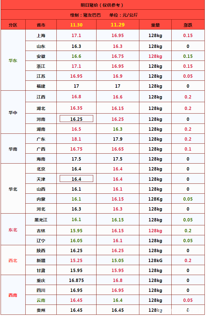 受供需调度,屠企调价收猪,瞻望,11月30日,猪价高潮0.04元/公斤,涨至16.51元/公斤,后市和顺集团猪企出栏以及屠企开工率的变化!
